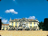 lateralmente, debruadas a ouro, as armas de Portugal.